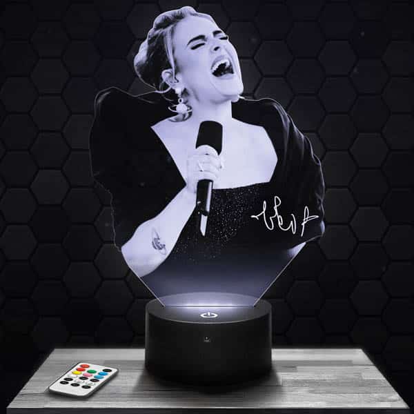 \nFascinante, surprenante et complètement originale La Lampe 3D Adele, l’objet tendance du moment ! Les Lampes sont faites de plaques de plexiglass gravées et découpées au laser dans notre boutique à coté de Clermont Ferrand. Le visuel s’éclaire à la mise en route du socle donnant un effet d’hologramme surprenant ! En lampe de salon, de chevet, ou encore de bureau, donnez une touche moderne à votre intérieur ! Si vous aimez les ambiances intimes, en plus de l’effet d’optique fascinant vous serez ravi par la lumière tamisée dégagée par La Lampe 3D Adele. Et ce n’est pas tout, vous allez pouvoir choisir la base lumineuse que vous souhaitez parmi tous les modèles que nous proposons comme le socle premium blanc, le socle réveil matin, le socle enceinte Bluetooth… La plupart de nos socles sont tactiles et livrés avec la télécommande pour modifier les couleurs selon vos humeurs. Votre Lampe 3D Adele attend vos instructions pour vous être envoyée dès aujourd’hui ! Un des principaux points positifs de nos articles est leur faible consommation en électricité. De nos jours, c’est un facteur à auquel il faut s’attacher, tant pour le côté économique qu’écologique. Les lampes à la vente via notre site web ne consomment qu’au maximum 5W, si ce n’est même 3 watt pour les plus économiques Nous garantissons la totalité de nos socles pendant 1 an. La qualité de nos produits est garantie. Si votre article était malgré tout défaillant pendant la première année, nous vous l’échangerions sans délai. Cela étant, cette technologie est très fiable et a une durée de vie de minimum 50 000 heures. Pour l’exemple, une auto ayant deux cent mille kilomètres au compteur kilométrique, n‘accuse en réalité que seulement trois mille heures de route en réalité, ça en dit long…\n\nDes questions techniques? Visitez notre FAQ\n\nDes questions sur la livraison? Cliquez ici\n