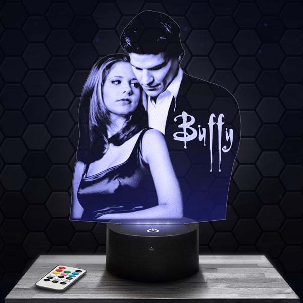 Illuminez votre espace avec notre veilleuse Buffy contre les vampires. La plaque en verre acrylique gravée avec précision sur son socle LED RVB tactile permet de choisir parmi 7 couleurs éclatantes, créant une ambiance lumineuse. Idéale pour le salon, la chambre ou le bureau, cette lampe deviendra le point central de votre décoration.