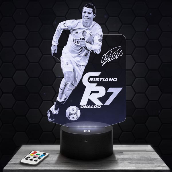 La lampe 3D Cristiano Ronaldo – Real Madrid est une source d’inspiration et de fierté, célébrant les exploits du joueur sur le terrain avec une lumière qui évoque l’esprit du football à son apogée.