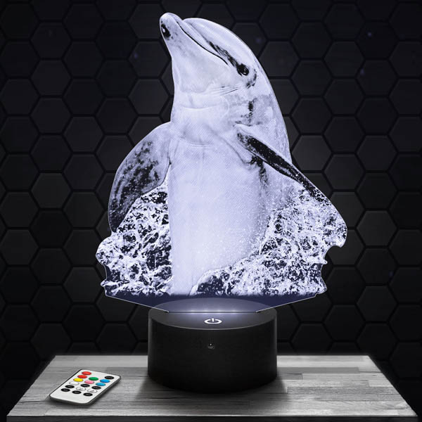 Découvrez le Dauphin Debout, une lampe 3D qui apportera une touche de magie à votre intérieur. Grâce à sa plaque en verre acrylique gravée en haute définition et découpée au laser dans nos ateliers à Clermont-Ferrand, cette lampe offre un visuel d’une qualité exceptionnelle. Son socle lumineux Noir Led RVB tactile avec télécommande vous permet de choisir parmi 7 couleurs différentes pour créer l’ambiance parfaite dans votre salon, votre chambre ou même comme lampe de bureau.