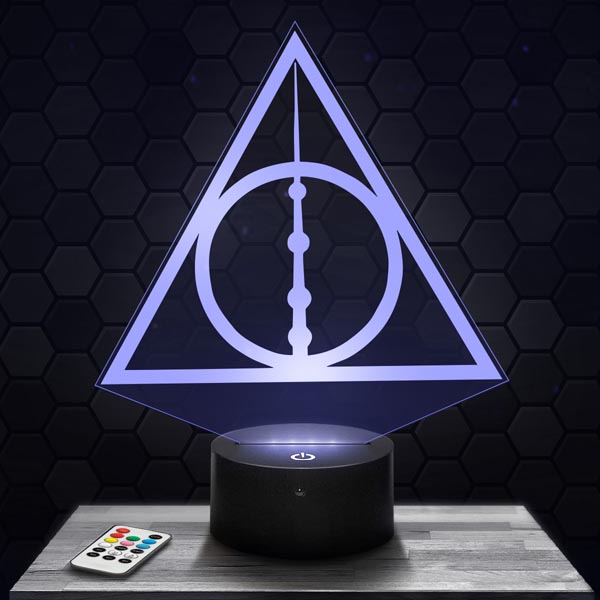 Plongez dans le mystère des Reliques de la Mort avec notre lampe 3D Harry Potter. Cette pièce artistique présente le symbole emblématique des Reliques, gravé avec précision sur une plaque acrylique, éclairé par un socle LED RVB offrant un choix de sept couleurs mystérieuses. Elle symbolise la quête de pouvoir, de sagesse et d’évasion face à la mort, représentant les ultimes enjeux de la saga.