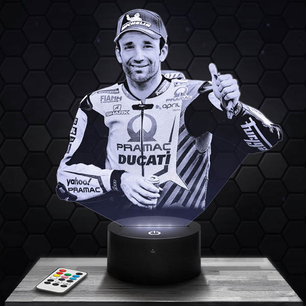 Découvrez la lampe Johann Zarco Pilote Moto GP, un produit incontournable pour tous les fans de sport et de moto. Cette lampe 3D est dotée d’une plaque en verre acrylique gravée en haute définition et découpée au laser dans nos ateliers à Clermont-Ferrand. Son socle lumineux Noir Led RVB tactile avec télécommande offre une expérience visuelle unique.