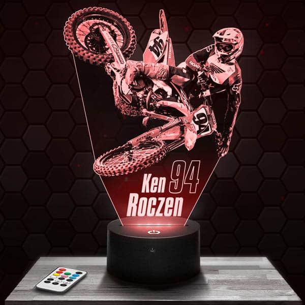 À la fois attrayante et moderne La Lampe 3D Ken Roczen Honda , la touche déco du moment ! Les Lampes sont fabriquées avec des plaques de plexiglass gravées et découpées au laser dans notre boutique à coté de Clermont Ferrand. Lors de l’allumage de la lampe, vous serez fasciné par l’effet d’hologramme provoqué par la lumière. Pour vos pièces de vie ou bien en veilleuses pour une chambre d’enfant, ajoutez une touche de modernisme au cocon familiale. Si vous aimez les atmosphères feutrées, en plus de l’effet d’hologramme captivant vous serez ravi par la lumière tamisée dégagée par La Lampe 3D Ken Roczen Honda . Grace aux socles proposés sur lampephoto.fr, vous allez pouvoir changer de couleurs sans limites. Simplement en touchant le socle tactile ou sans même devoir vous déplacer grâce à la télécommande inclue avec la majorité des multiples socles proposés. Choisissez le modèle qui sublimera votre Lampe 3D Ken Roczen Honda ! Un des gros points positifs de nos produits est leur basse consommation électrique. A l’heure actuelle, c’est un facteur à considérer, tant pour le côté économique qu’écologique. Les lampes à la vente sur notre site ne consomment pas plus de 5 watt, voir même 3 watt pour les plus économiques Nous vous garantissons l’entièreté de nos produits pendant 1 an. La qualité est garantie. Si votre produit était amené à être dysfonctionnel pendant cette période de 1 an, nous vous le remplacerions directement. Cependant, ce matériel est très durable et a une durée de vie de minimum cinquante mille heures. Pour le parallèle, une voiture ayant 200000km affichée au compteur, n’a en fait que seulement 3 000 Hrs de route en terme de temps, ça en dit long…
