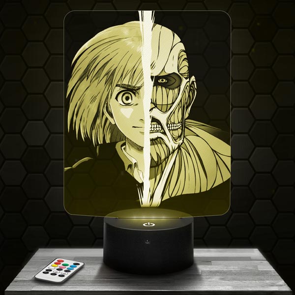 Cette lampe d’Armin transformé en Titan est le cadeau parfait pour tous les fans de L’Attaque des Titans. Que ce soit pour un anniversaire ou Noël, cette lampe ravira les amateurs du manga. La télécommande incluse permet de changer facilement les couleurs pour créer une ambiance personnalisée. Avec notre vaste collection de plus de 1000 modèles sur notre site E-commerce “lampephoto”, vous trouverez certainement la lampe idéale pour chaque fan.