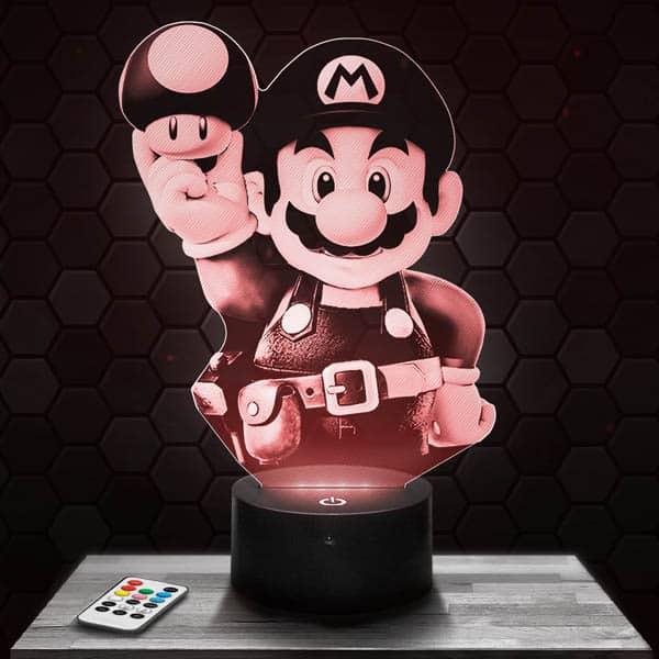 Avec son design épuré, et son originalité, La Lampe 3D Mario Champignon, la touche déco du moment ! Les Lampes sont faites de plaques de plexiglass gravées et découpées au laser dans nos ateliers situés en Auvergne. Lors de l’allumage de la lampe, vous serez fasciné par l’effet d’illusion que cela provoque. En lampe de salon, de chevet, ou encore de bureau, apportez de la couleur à votre intérieur ! Si vous aimez les atmosphères feutrées, en plus de l’effet d’optique captivant vous serez charmé par la lumière tamisée que vous offrira La Lampe 3D Mario Champignon. Grace aux bases lumineuses proposées sur lampephoto.fr, vous pourrez changer de couleurs autant que vous voudrez. Directement en touchant le socle tactile ou sans même vous déplacer grâce à la télécommande livrée avec la majorité des différents socles proposés. Votre Lampe 3D Mario Champignon n’attend plus que votre choix pour vous être expédiée dès maintenant ! Un des principaux points positifs de nos produits est la basse consommation en électricité. Par les temps qui courent, c’est un paramètre à auquel il faut s’attacher, autant pour le côté économique que pour celui de l’écologie. Les lampes proposées via notre site web ne consomment pas plus de 5 watt, si ce n’est même 3 watt pour les moins gourmandes Pour ce qui est de la longévité de nos bases lumineuses, elles sont données pour une espérance de vie minimum de 50000 heures, ce qui équivaut si nous faisons un simple calcul, à environ 5 ans si l’on laisse la lampe 3D branchées 24 heures sur 24, 7 jours sur 7 et 365 jours par an. Mais dans l’hypothèse où vous seriez confronté à une défaillance matérielle dans les premiers temps, tous les articles vendus sur le site sont garantis 1 an. Nous remplaçons tout produits défectueux immédiatement.