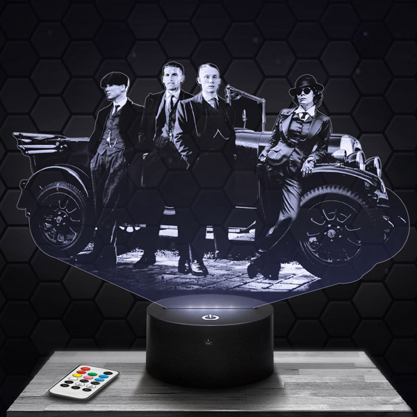 La lampe 3D Peaky Blinders – Famille Shelby est le cadeau idéal pour tous les passionné. Que ce soit pour un anniversaire ou Noël, cette lampe ravira les fans. La télécommande incluse permet de personnaliser facilement les couleurs, ajoutant une touche légendaire à votre décoration. Cette lampe unique en son genre est parfaite pour créer une atmosphère tamisé.