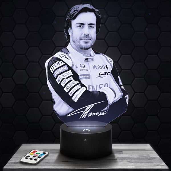 Si vous souhaitez offrir quelque chose d’unique à un fan de Fernando Alonso, notre lampe 3D est le choix parfait. Elle symbolise l’admiration pour le pilote et enrichit tout espace avec une lumière personnalisée. La télécommande facilite le changement d’ambiance à tout moment. Parcourir notre vaste sélection sur “lampephoto” vous permettra de dénicher la lampe idéale, célébrant les héros de la Formule 1.