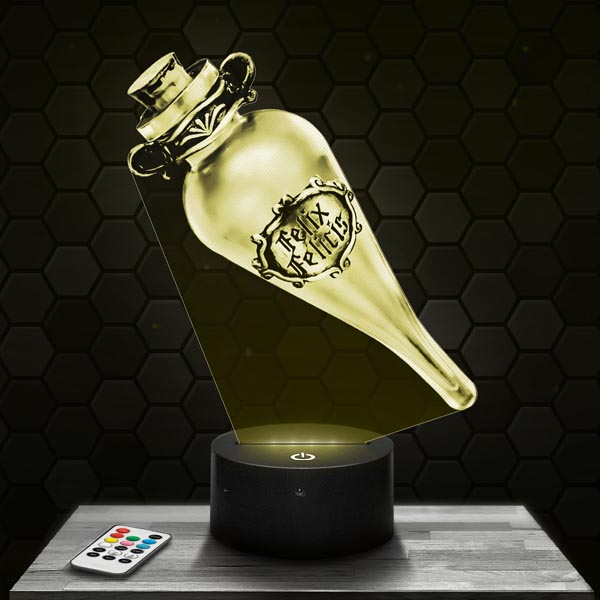 La lampe 3D Potion Felix Felicis Harry Potter est le cadeau idéal pour tous les passionné. Que ce soit pour un anniversaire ou Noël, cette lampe ravira les fans. La télécommande incluse permet de personnaliser facilement les couleurs, ajoutant une touche légendaire à votre décoration. Cette lampe unique en son genre est parfaite pour créer une atmosphère tamisé.