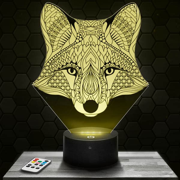 À la fois surprenante et moderne La Lampe 3D Renard mandala, l’article de décoration du moment ! Les Lampes sont faites de plaques de plexiglass gravées et découpées au laser par nos soins dans le Puy de Dôme. L’image s’illumine à l’allumage du socle donnant un effet d’hologramme surprenant ! En lampe de salon, de chevet, ou encore en veilleuse pour les enfants, donnez une touche moderne à votre intérieur ! Si vous aimez les ambiances feutrées, en plus de l’effet d’hologramme captivant vous serez ravi par la lumière tamisée que vous offrira La Lampe 3D Renard mandala. Grace aux bases lumineuses présentées sur lampephoto.fr, vous pourrez modifier les couleurs sans limites. Tout bonnement en touchant la base tactile ou sans même avoir à vous déplacer avec la télécommande fournie avec la majorité des différents socles proposés. Plus qu’à choisir la base lumineuse qui sublimera votre Lampe 3D Renard mandala ! Pour ce qui est de la consommation en énergie, la totalité de nos lampes 3D se veulent très clairement économiques. En effet, chacun de nos produits consomment de 3 à 5 watt, ce qui est extrêmement peu pour un appareil électrique. Pour ce qui est de la longévité de nos bases lumineuses, elles sont fabriquées pour une durée de fonctionnement minimum de 50000 heures, ce qui correspond en faisant un simple calcul, à plus de 5 ans en gardant la lampe allumée 24H/24, 7 jours sur 7 et 365 jours/an. Mais dans l’hypothèse où vous seriez confronté à un souci technique dans la première année, tous les produits du site internet sont garantis 1 an. Nous remplaçons tout socles défectueux très rapidement.
