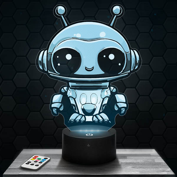 Vous cherchez le cadeau parfait pour un anniversaire ou pour Noël ? Ne  cherchez plus ! La lampe 3D Robot est le cadeau idéal. Son design moderne et  son effet hologramme en font un objet unique en son genre. Avec notre plus  grand catalogue d’Europe proposant plus de 500 modèles au choix, vous  trouverez forcément celui qui correspondra à la personnalité de votre proche.  De plus, la lampe 3D Robot est alimentée par piles ou par câble USB, ce qui  la rend pratique à utiliser où que vous soyez.