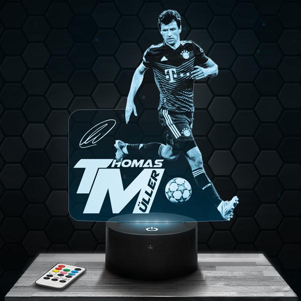 La lampe 3D Thomas Müller est le cadeau idéal pour tout amateur de football. Que ce soit pour un anniversaire ou Noël, cette lampe ravira les fans de Müller. La télécommande incluse permet de personnaliser facilement les couleurs, ajoutant une touche légendaire à votre décoration. Cette lampe unique en son genre est parfaite pour créer une atmosphère digne des performances de Müller.
