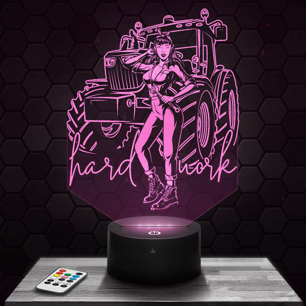 Plongez dans l’univers des années 50 avec la lampe Tracteur Pin Up Vintage. Son design original et rétro apportera une touche d’élégance et de nostalgie à votre intérieur. La plaque en verre acrylique gravée en haute définition et découpée au laser dans nos ateliers à Clermont-Ferrand offre un rendu visuel exceptionnel. Que ce soit dans le salon, la chambre ou comme lampe de bureau, cette lampe 3D saura créer une ambiance chaleureuse et unique.