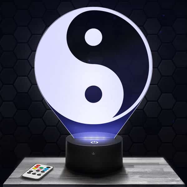À la fois innovante et originale La Lampe 3D Yin et Yang, le  cadeau idéal pour les amis, la famille, les enfants, à offrir en toutes  occasions ou pour se l’offrir à soit même.    Toutes nos lampes sont fabriquées par nos techniciens, en plexiglass de 4  ou 5 mm d’épaisseur et usinées avec nos machines de découpe et gravure laser  dans nos bureaux situés dans le Puy de Dôme. L’image s’illumine à la mise en  route du socle donnant un effet d’hologramme fascinant !    Pour vos pièces de vie ou bien en veilleuses pour une chambre d’enfant,  ajoutez une nouvelle ambiance lumineuse au cocon familiale.    Si vous aimez les ambiances intimes, en plus de l’effet de trompe l’œil  fascinant vous serez charmé par la lumière tamisée que vous offrira La Lampe  3D Yin et Yang.    Grace aux socles proposés sur lampephoto.fr, vous pourrez changer de  couleurs sans limites. Directement en touchant le socle tactile ou sans même  avoir à vous déplacer avec la télécommande livrée avec la majorité des  différents socles proposés.    Choisissez la base lumineuse qui sublimera votre Lampe 3D Yin et Yang  !    Pour ce qui est de la consommation en électricité, nos lampes se veulent  extrêmement écologiques. De ce fait, nos différents produits consomment de 3  à 5 watt, ce qui est extrêmement peu pour une lampe.    Parlons de la durée de vie de nos lampes 3D, elles sont conçues pour une  espérance de vie minimum de cinquante mille heures, ce qui correspond si nous  faisons un rapide calcul, à plus de cinq ans en laissant la lampe allumée  24H/24, 7/7 jours et 365 jours/an. Mais dans l’hypothèse où vous seriez  confronté à une défaillance matérielle dans les premiers temps,  tous les articles du site lampephoto.fr  sont garantis 1 an. Nous échangeons tous les socles en panne dans les plus  brefs délai.