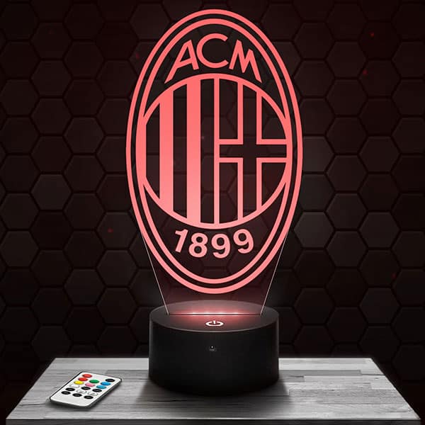 \nÀ la fois surprenante et originale La Lampe 3D Milan AC, l’objet tendance du moment !\nLa totalité des Lampes 3D sont Elaborées par notre équipe, en plexiglass de 4 ou 5 mm d’épaisseur et transformées avec nos machines de découpe et gravure laser dans nos locaux situés dans le Puy de Dôme. Le motif s’illumine à la mise en route du socle donnant un effet d’hologramme surprenant !\nPour vos pièces de vie ou bien comme lampe de bureau, apportez une touche de modernisme à la maison.\nEn plus de l’effet d’illusion d’optique exceptionnel, la lampe 3D Milan AC produira une lumière tamisée idéale pour vos ambiances détentes.\nDe plus, vous allez pouvoir choisir le socle que vous préférez parmi tous les modèles présentés tel que le socle premium blanc, le socle réveil matin, les cadres photos… La plupart de nos socles sont tactiles et livrés avec la télécommande pour interchanger les couleurs à votre guise.\nPlus qu’à choisir le modèle qui illuminera votre Lampe 3D Milan AC !\nUn des principaux avantages de nos lampes est leur basse consommation électrique. A l’heure actuelle, c’est un paramètre à prendre en compte, tant pour l’aspect économique qu’écologique. Tous nos modèles de lampes à la vente via notre site web ne consomment qu’au maximum 5W, voir même 3 watt pour certains socles lumineux\nParlons de la durée de vie de nos lampes 3D, elles sont fabriquées pour une espérance de vie d’environ 50000 heures, ce qui correspond si nous faisons un simple calcul, à environ 5 ans si l’on laisse la lampe 3D branchées 24H/24, 7/7 jours et 365 jours/an. Dans le cas où vous rencontriez une défaillance matérielle dans la première année, tous les produits du site internet sont garantis 1 an. Nous échangeons les articles défectueux sans délais.\n\nDes questions techniques? Visitez notre FAQ\n\nDes questions sur la livraison? Cliquez ici\n