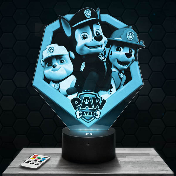 En plus de l’effet d’illusion d’optique incomparable, la Lampe LED 3D Pat  Patrouille dégagera une lumière tamisée idéale pour vos ambiances entres  amis.