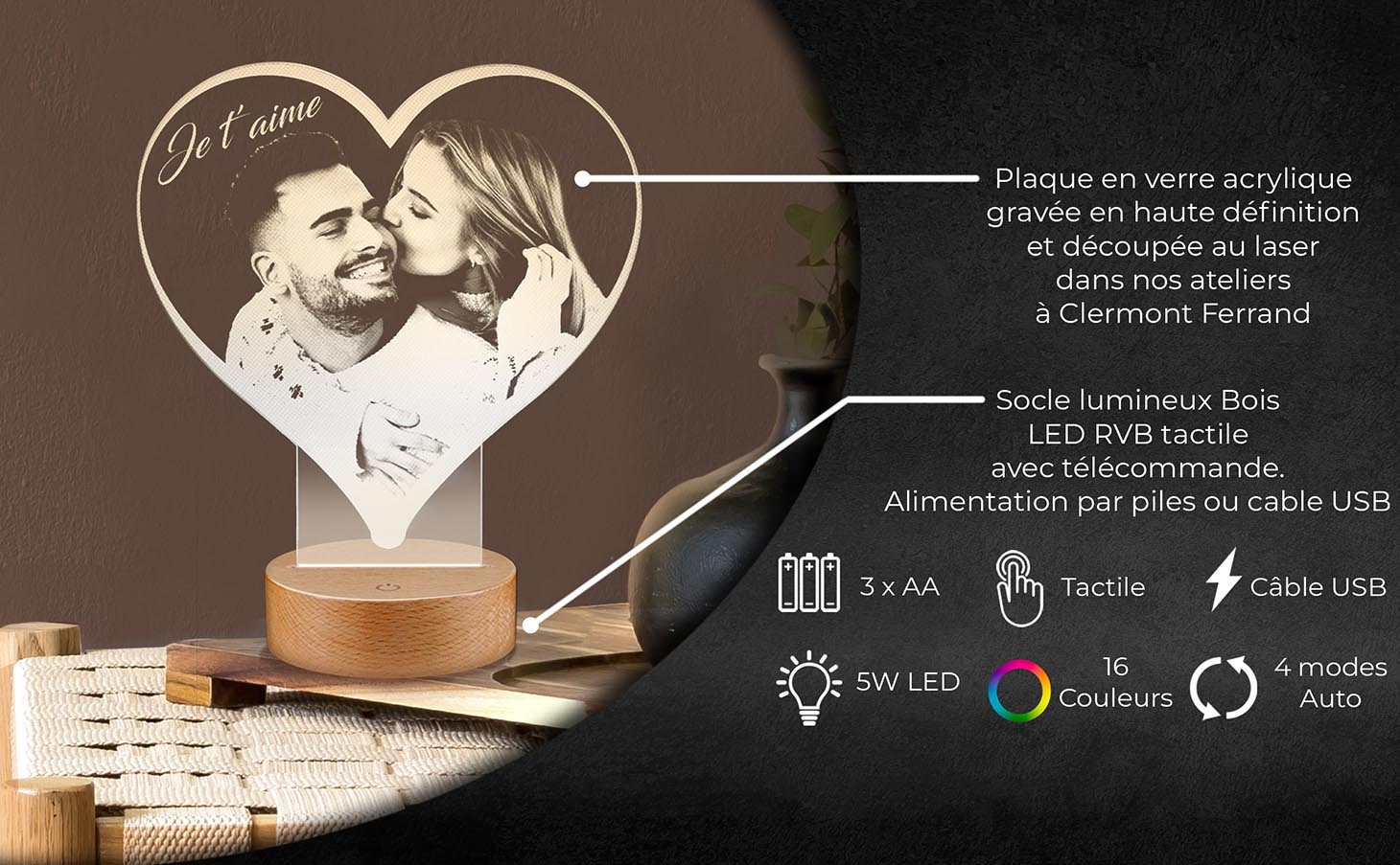 Comme pour les lampes, créez votre veilleuse photo personnalisée en quelques clics