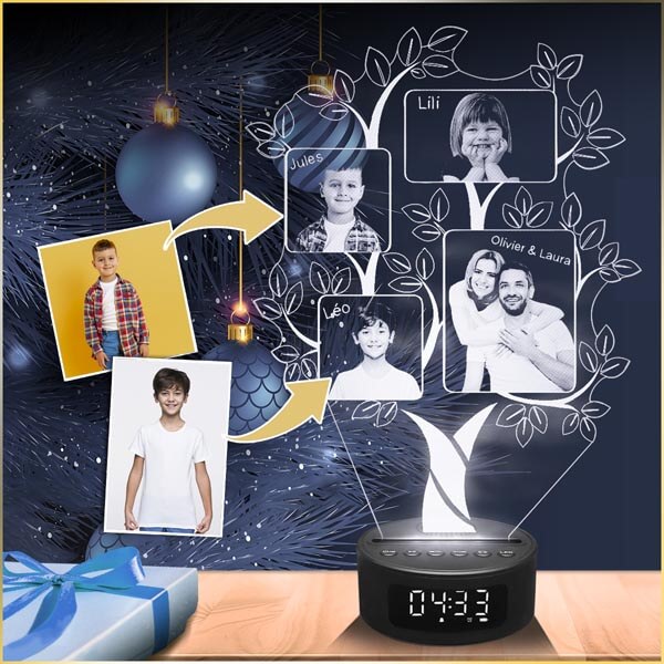 Noël Lampe personnalisée Arbre 4 Photos Haut de gamme Réveil / Enceinte Bluetooth