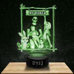Veilleuse Personnalisée Cadre Bois Lapin Haut de Gamme Réveil / Enceinte Bluetooth