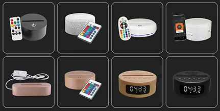 Vous allez pouvoir choisir la base lumineuse que vous souhaitez parmi tous les socles lumineux présentés comme le socle basique, le socle lumineux craquelés ou encore le socle enceinte Bluetooth pour les berceuses… presque tous nos socles sont tactiles et livrés avec la télécommande pour changer les couleurs selon vos humeurs et réglable en intensité pour s’adapter au mieux à la pièce.